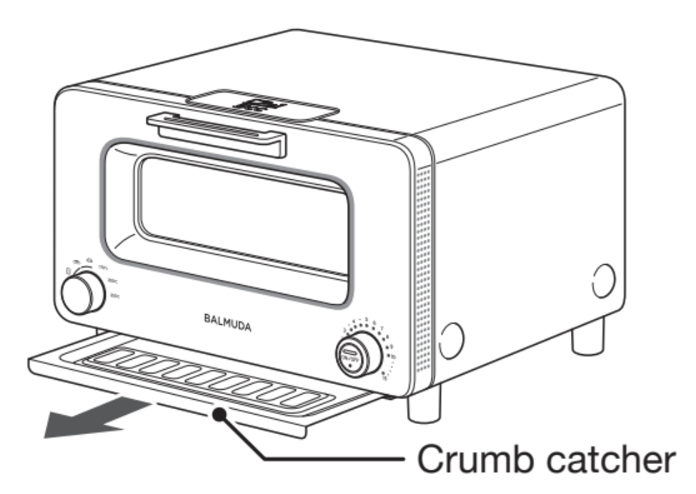 1. Draw the crumb catcher toward the front.